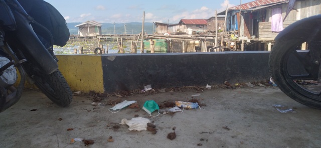 Sejak pandemi covid-19, pesona Danau Sentani ini terganggu oleh sampah masker, seperti terlihat di Dermaga Yahim.