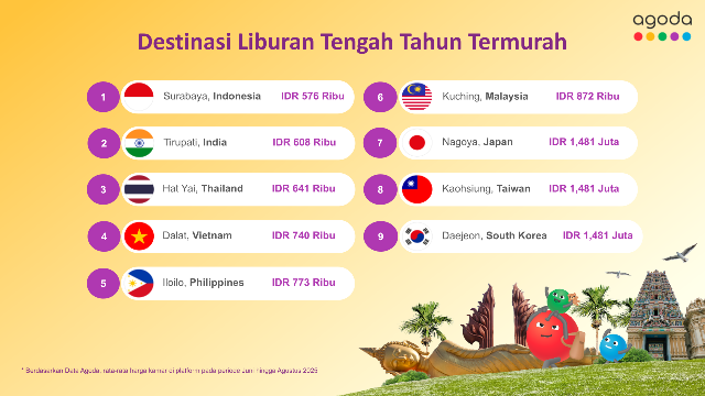 Platform perjalanan digital Agoda merilis daftar destinasi Asia paling terjangkau untuk periode bulan Juni hingga Agustus 2025. Mulai dari kawasan budaya hingga tempat bersantai bernuansa…