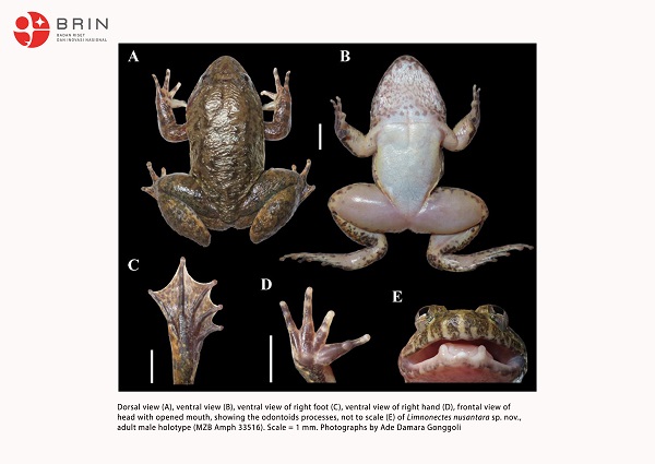 Peneliti dari Badan Riset dan Inovasi Nasional (BRIN) berhasil menemukan dua spesies baru katak bertaring (famili Dicroglossidae) dari kawasan Pegunungan Meratus di Kalimantan bagian tenggara.